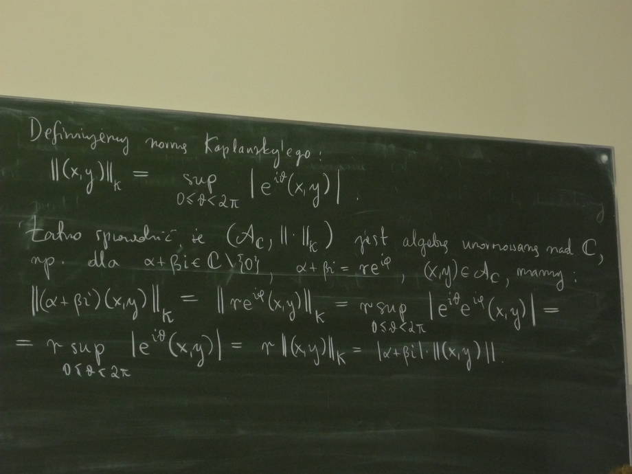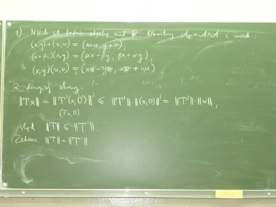 During the talk we will finish the topic of general constructions for normed algebras, in particular we will look longer on the problem of complexification real normed algebras.