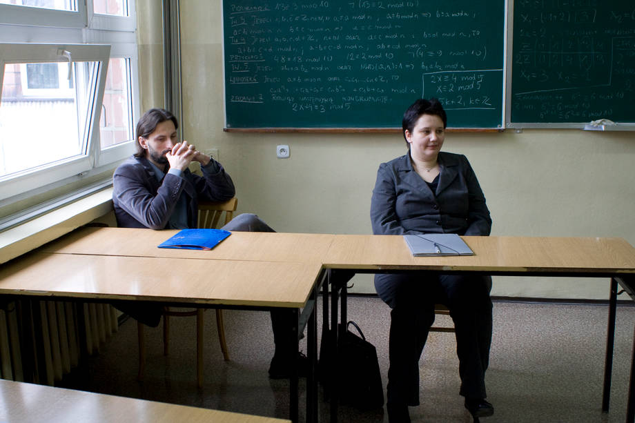 Dr Tomasz Bielaczyc, przewodnicz±cy jury Epigramatu, główny organizator konkursu i mgr Żywilla Fechner, jurorka Epigramatu, która wygłosiła wykład finałowy.